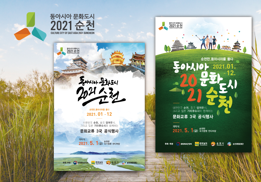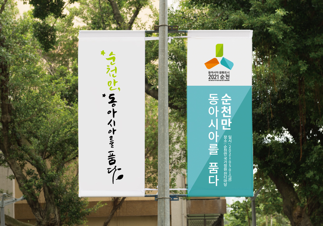 Expressing the cultural and ecological, geographical value of the three East Asian cultural cities in Suncheon in 2021, based on the initial consonants of Suncheon's . The representation of self-esteem as a natural-centered cultural city made by people and nature while at the same time symbolizing the humanistic value of Suncheon City. Also, it means ecological connectivity of Suncheon City, Yangzhou City and Kitakyushu City, creativity of individual cultures and connectivity of cultural events. Green in color.